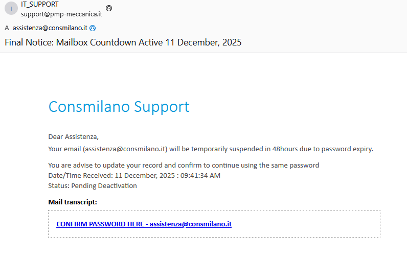 *Oggetto:* *Final Notice: Mailbox Countdown Active 11 December, 2025*