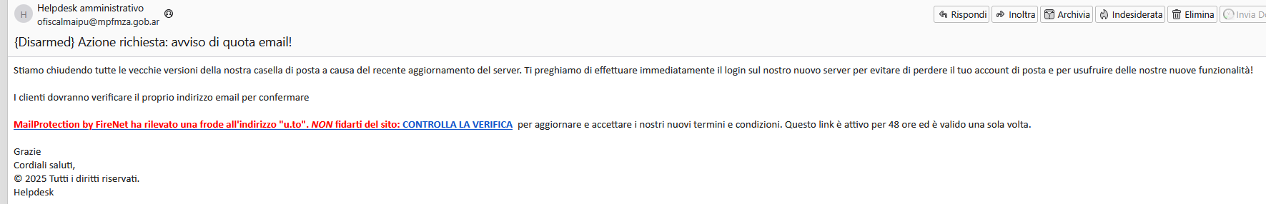 questo falso mittente: Helpdesk amministrativo <ofiscalmaipu a mpfmza.gob.ar>